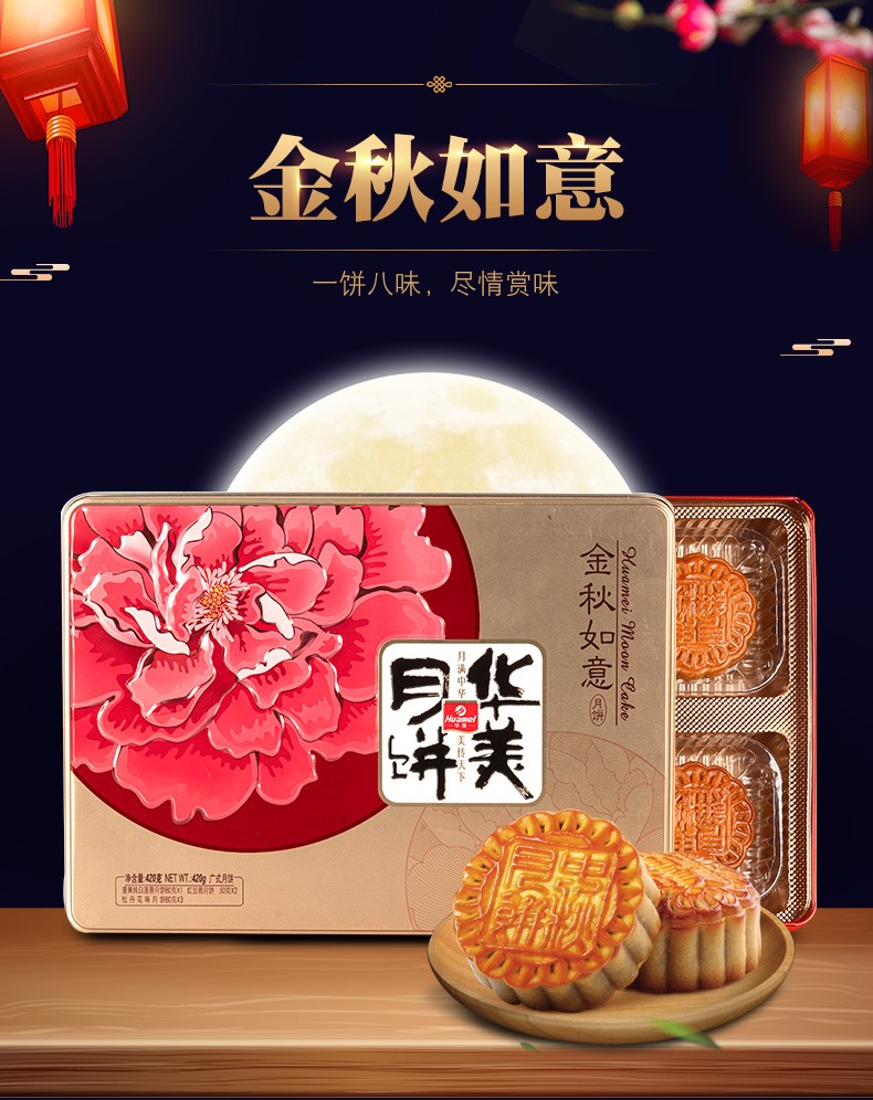 华美月饼 金秋如意420g 礼盒装 中秋送礼赏月佳品 广式中秋月饼礼盒送礼团购