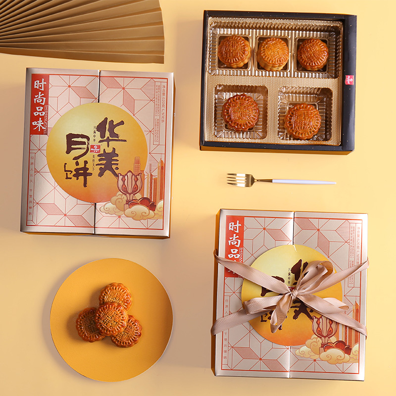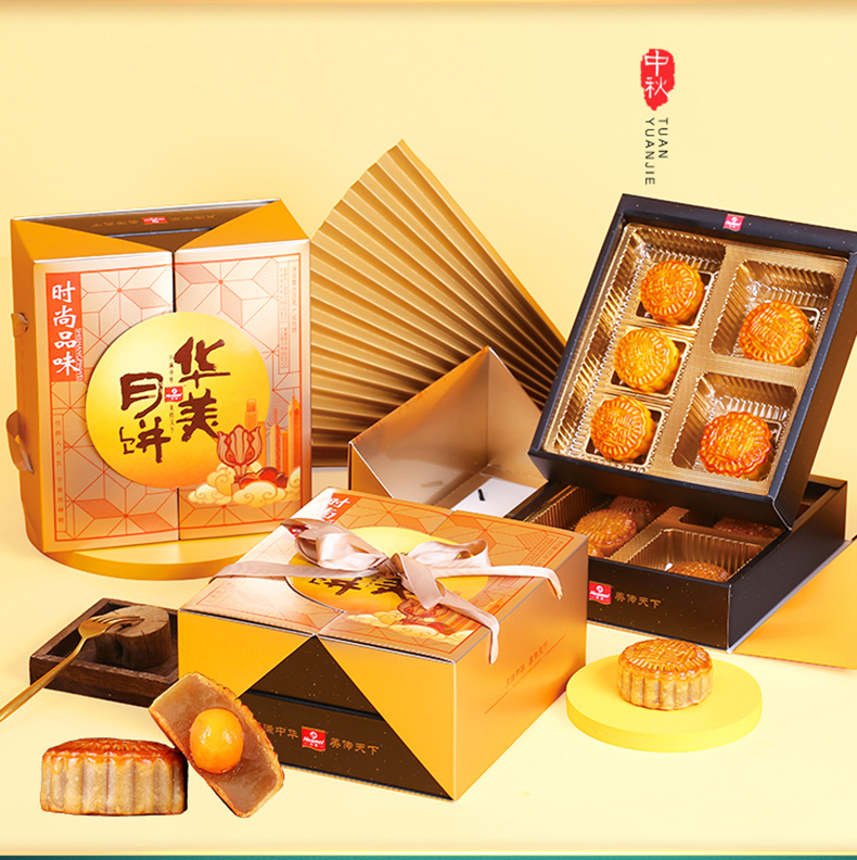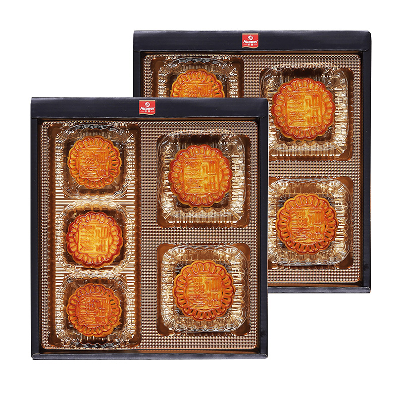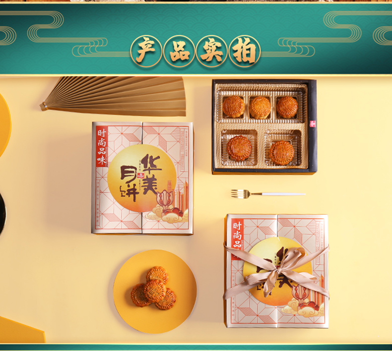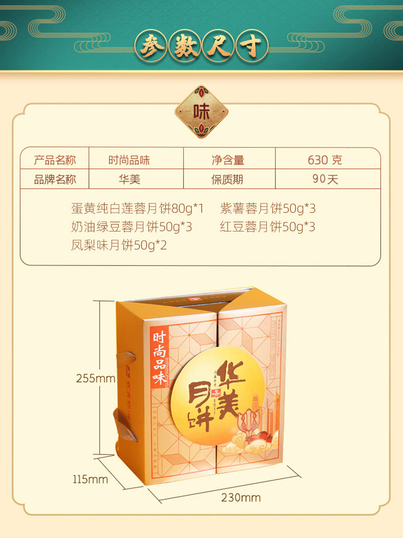 华美时尚品味630g中秋节广东广式蛋黄白莲蓉月饼礼盒装团购送礼品
