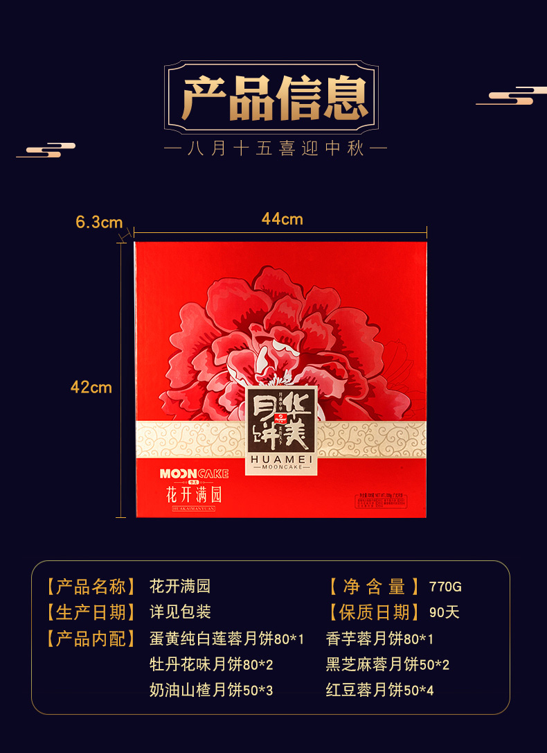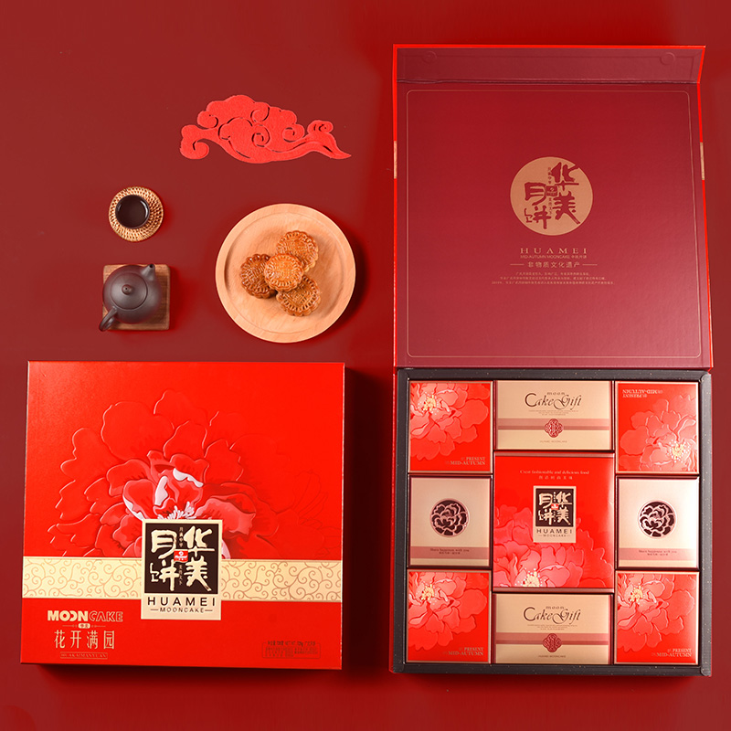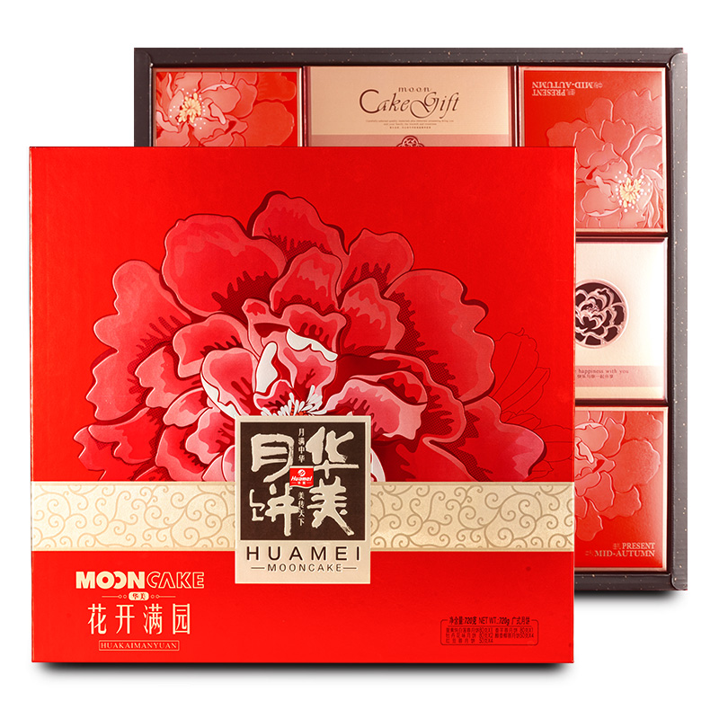 华美花开满园月饼770g礼盒广式蛋黄纯白莲蓉多口味香芋蓉中秋送礼