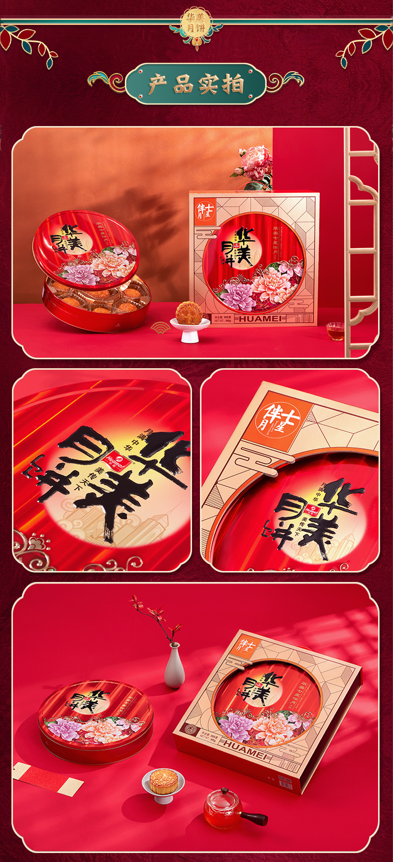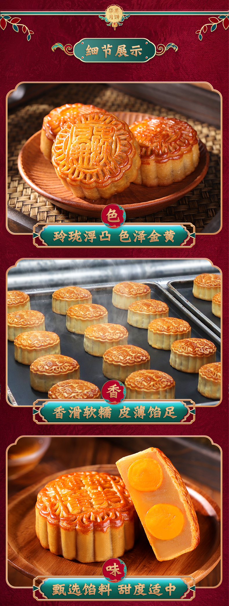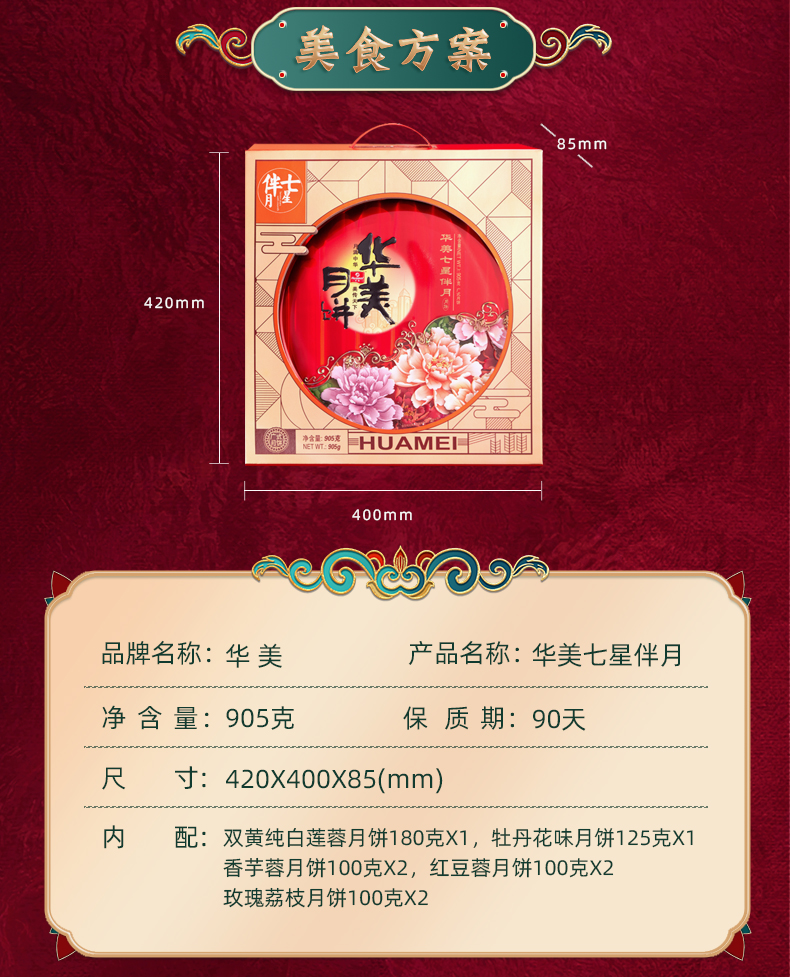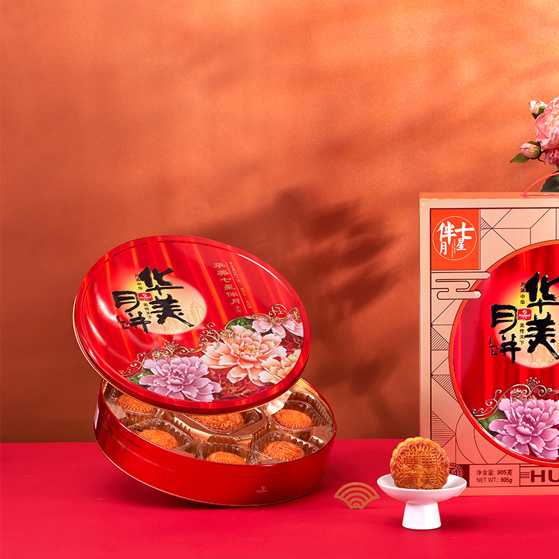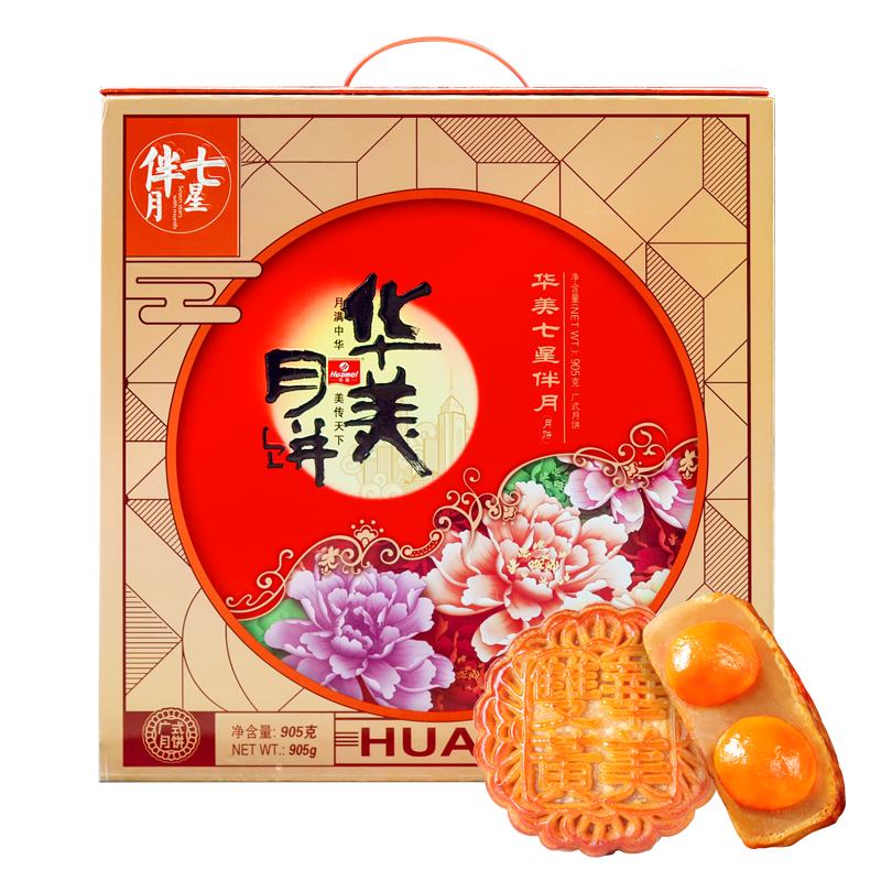 华美七星伴月905g月饼广式蛋黄纯白莲蓉多口味糕点团购礼盒装送礼