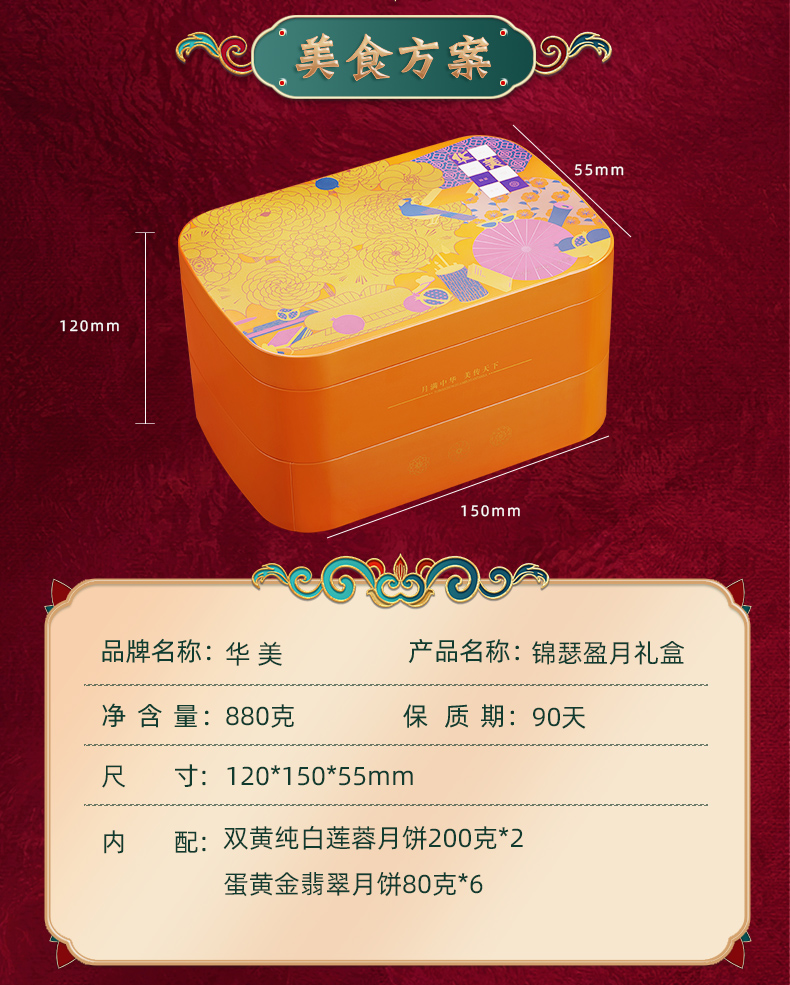 华美锦瑟盈月880g双黄纯白莲蓉蛋黄月饼广式中秋送礼团购礼盒装