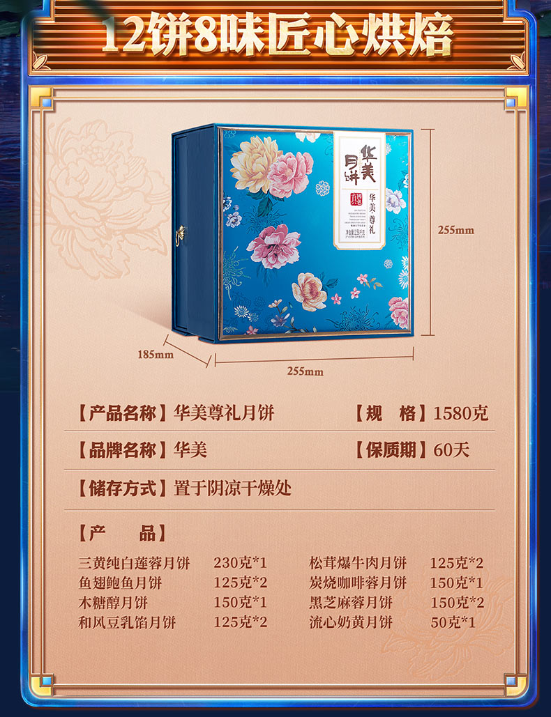 华美尊礼1580g国潮风月饼礼盒广式双黄白莲蓉糕点中秋节送礼盒装
