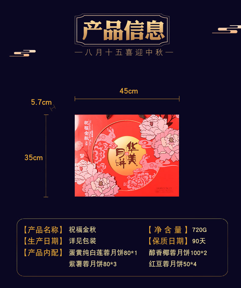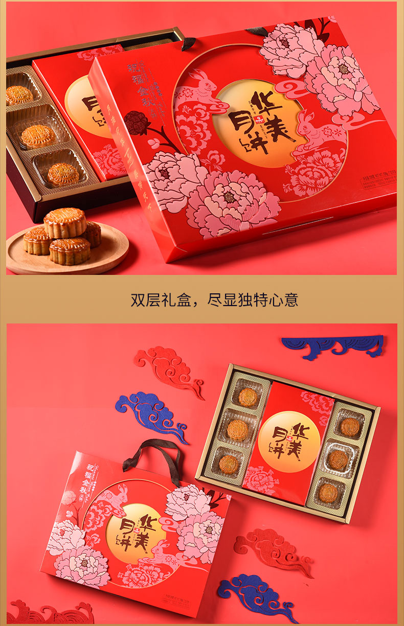 华美月饼 祝福金秋720g礼盒装 蛋黄白莲蓉红豆蓉月饼中秋送礼