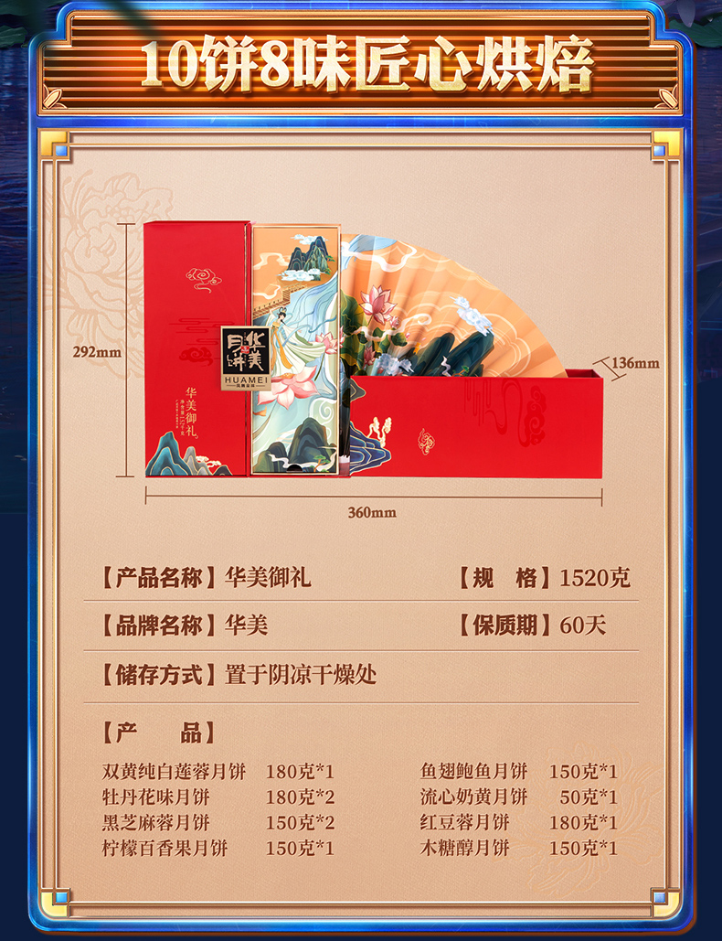 华美月饼御礼1520g月饼礼盒广式双黄白莲蓉糕点送礼月饼中秋礼品